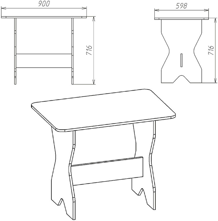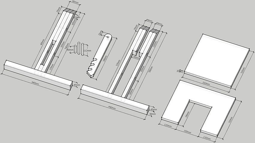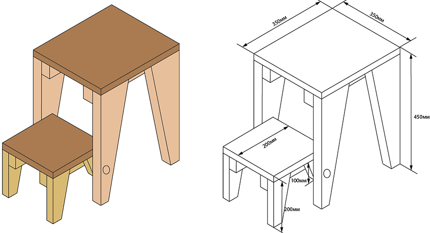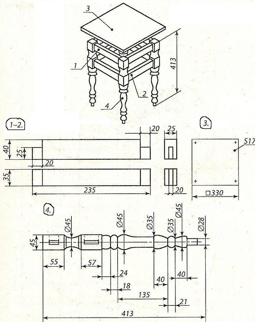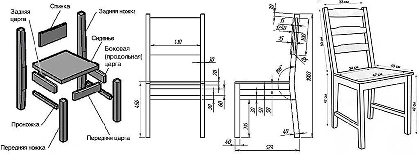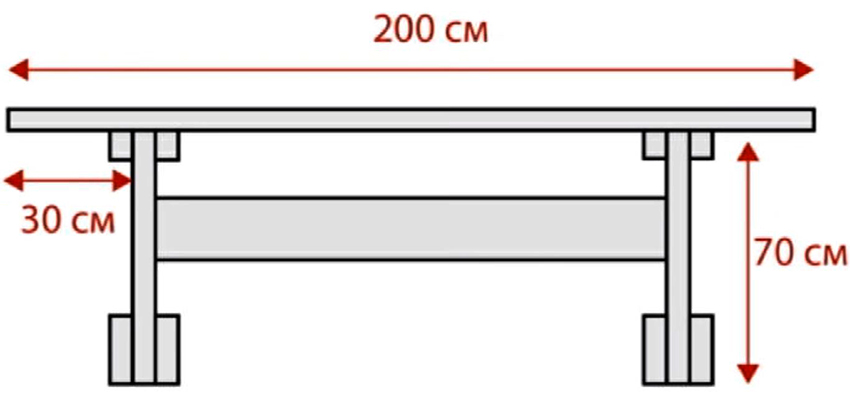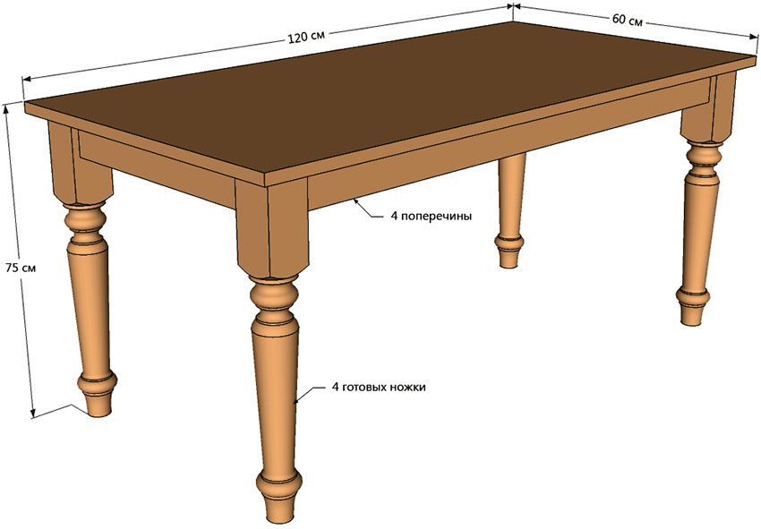The construction turns out to be non-coarse, stable and versatile. You can put benches near it, chairs, small sofas and armchairs. Chairs can also be made by yourself. The following blanks must be in stock: