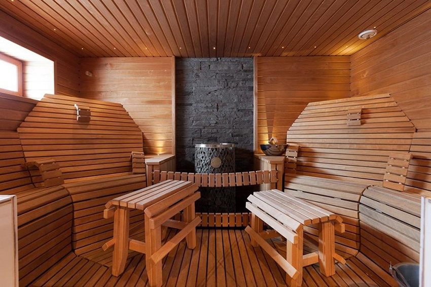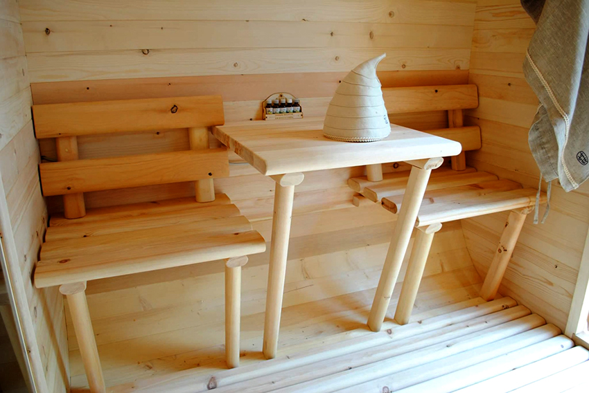 You can determine the basic requirements for interior items from their purpose. They take a steam bath and have a rest. High humidity requires strength and moisture resistance from the material. Relaxation requires ergonomics and pleasant visual perception. Furniture cannot occupy most of the room space, otherwise the conditions of comfort and convenience will not be met. Therefore, sauna furniture must have the following characteristics: