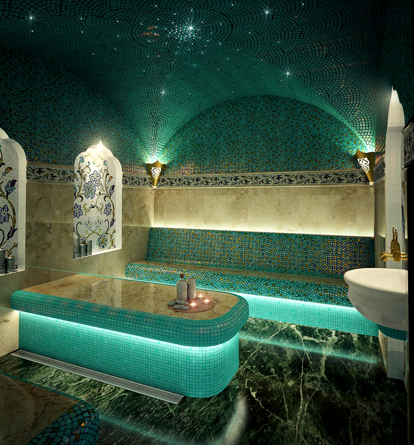 The bath, rationally equipped and tastefully furnished, is a real pride of the owner and a wonderful place for relaxation and communication.