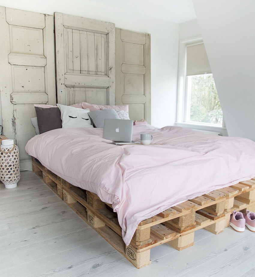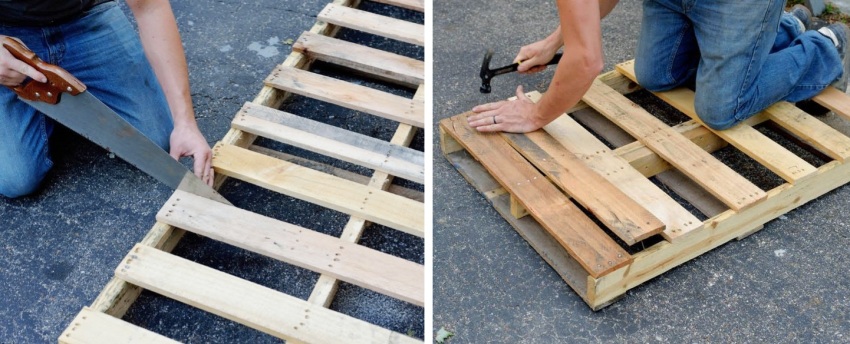 Helpful advice! The pallet can be made by yourself. This will require wooden beams with a cross-sectional area of 6-7 cm and boards with a thickness of 1.5-2 cm. Having outlined the size of the structure, it remains only to cut the material and assemble it according to the scheme.