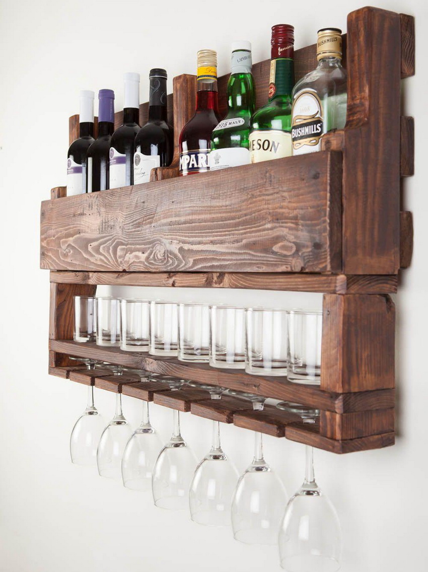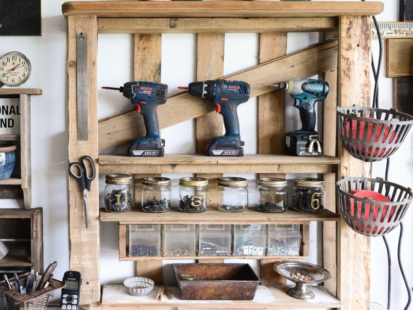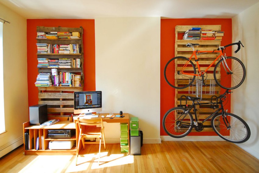 Old pallets easily adapt to almost any type of furniture. On their basis, you should create multifunctional shelves for various purposes.