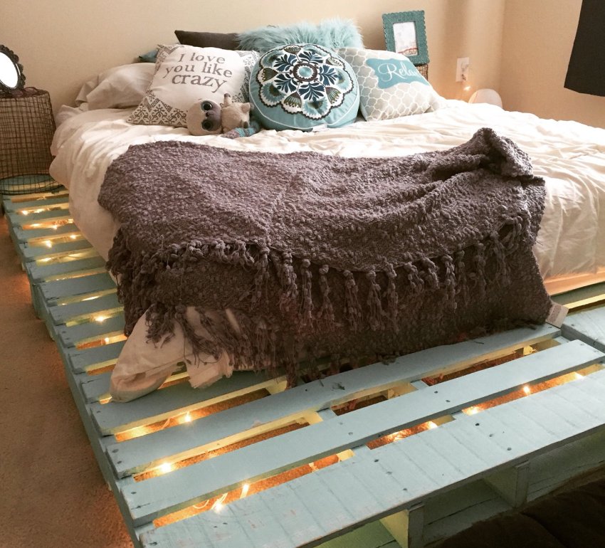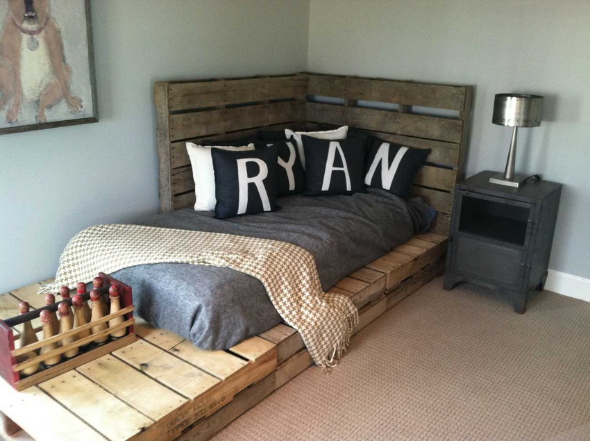 On the finished structure, it remains only to place mattress... This option making a bed far from the only one, but the most popular. To simplify the work of assembling the frame, metal plates can be used to hold the pallets together.