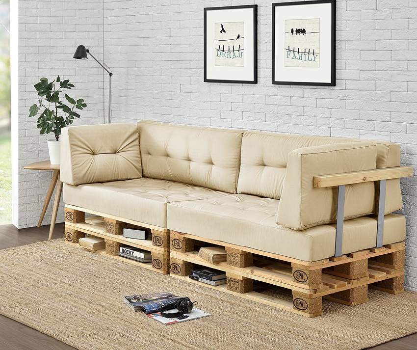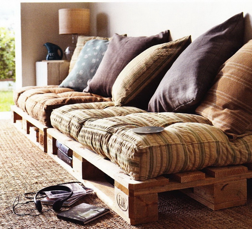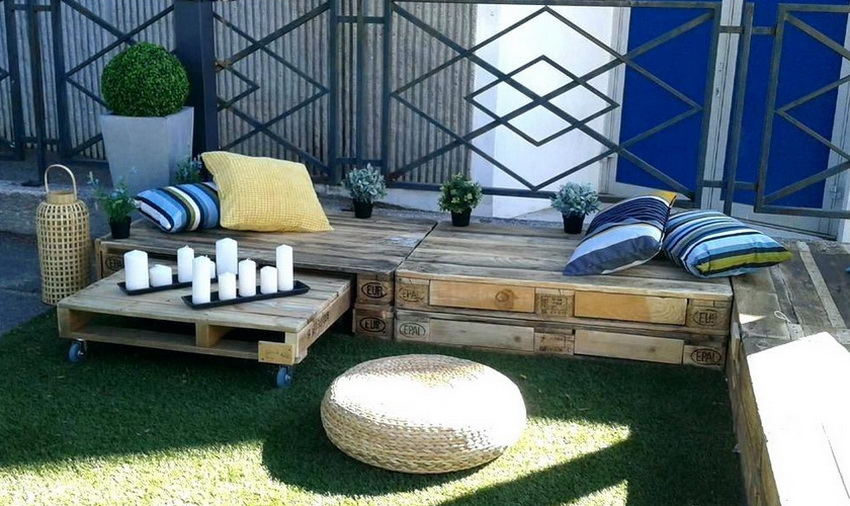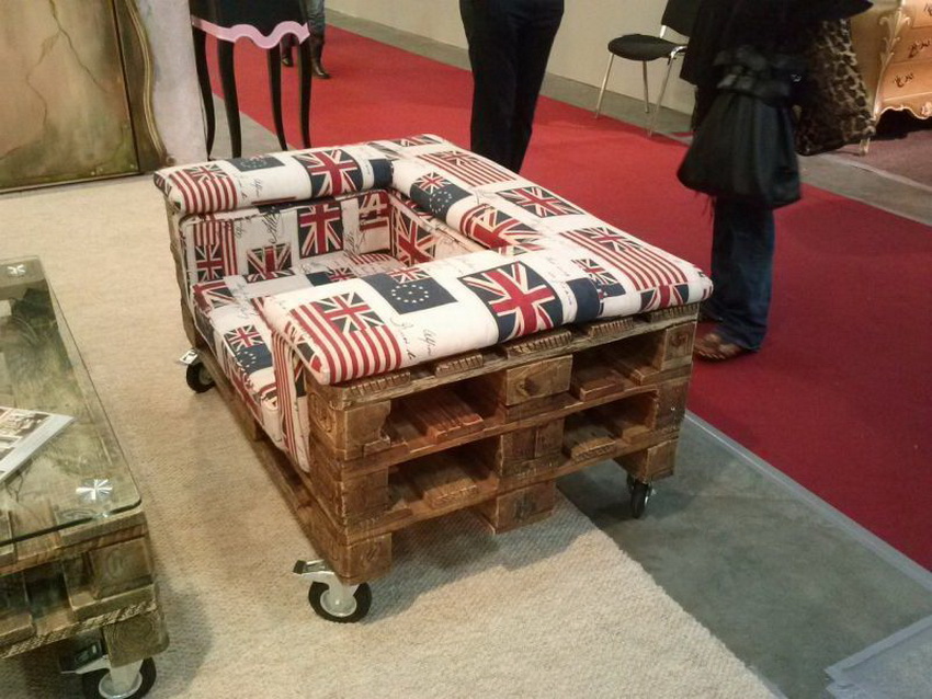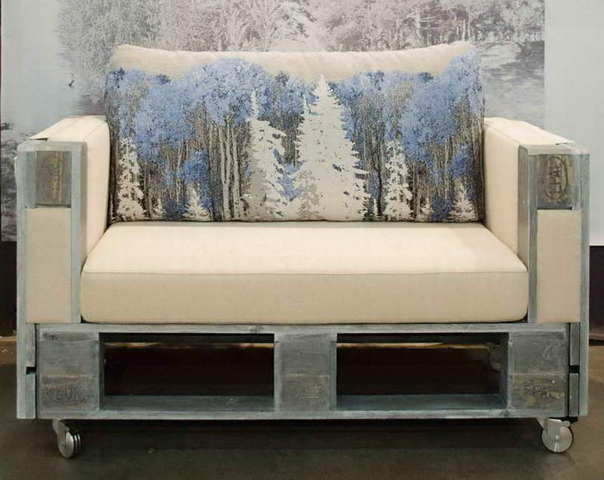 Pallets can be used to make a small sofa that will also function as an armchair.