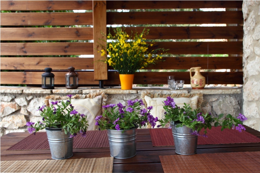 Helpful advice! Instead of flowers, you can plant strawberries or greens in pots. They will not only become a decoration of the yard, but will also bring a harvest.