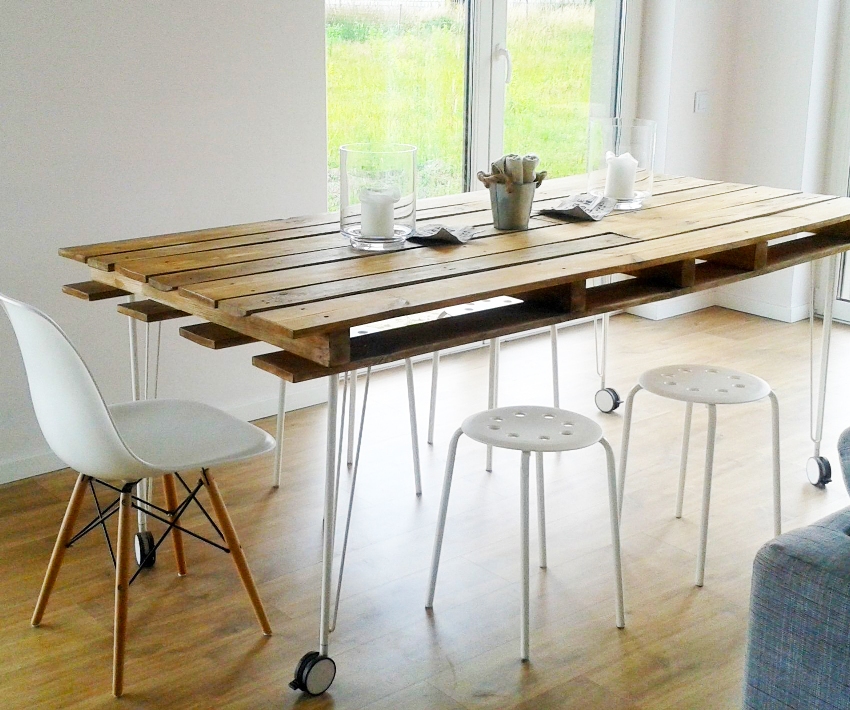 The advantage of pallets is their versatility and high strength. Therefore, they are ideal for making coffee and dining tables.