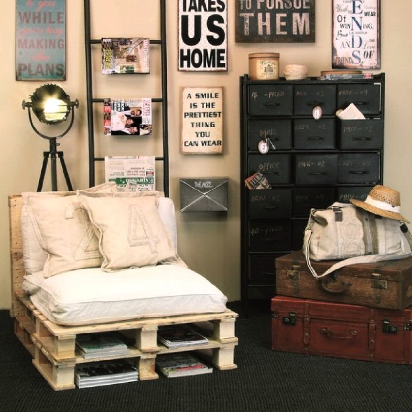 All these markings give wood pallet furniture a special charm, evoking associations with travel and recreation in distant countries.
