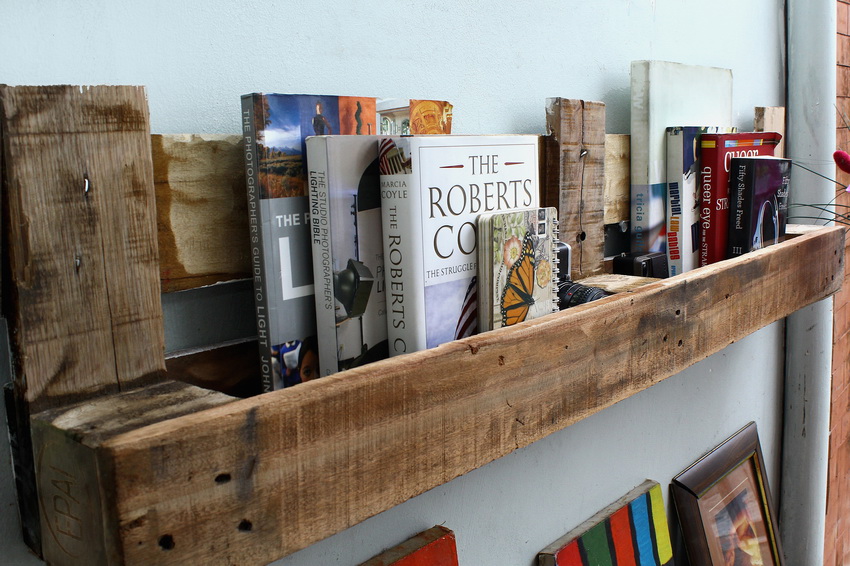 To make furniture in the form of bookshelves with your own hands, you will need to divide the pallet into 3 parts. In this case, the middle zone of the structure is cut out, since it will not be used in work. The remaining two parts are processed with sandpaper, covered with a layer of primer and painted in any color you like.