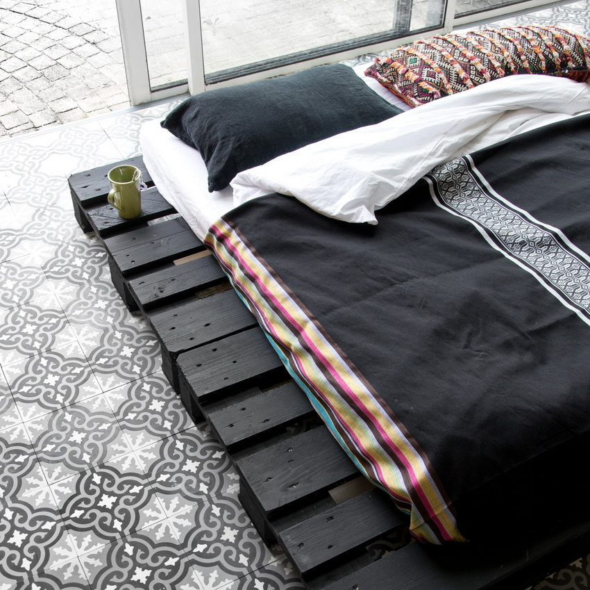 Helpful advice! Laminate floors with similar markings can be purchased in stores, which will support the overall style of the room and complement the design of furniture made from Euro pallets.