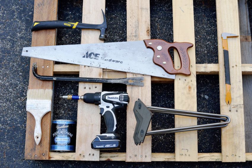 In addition, you need to prepare tools for work. To assemble a table using pallets, you will need screws or nails, as well as hardware to fix the legs.