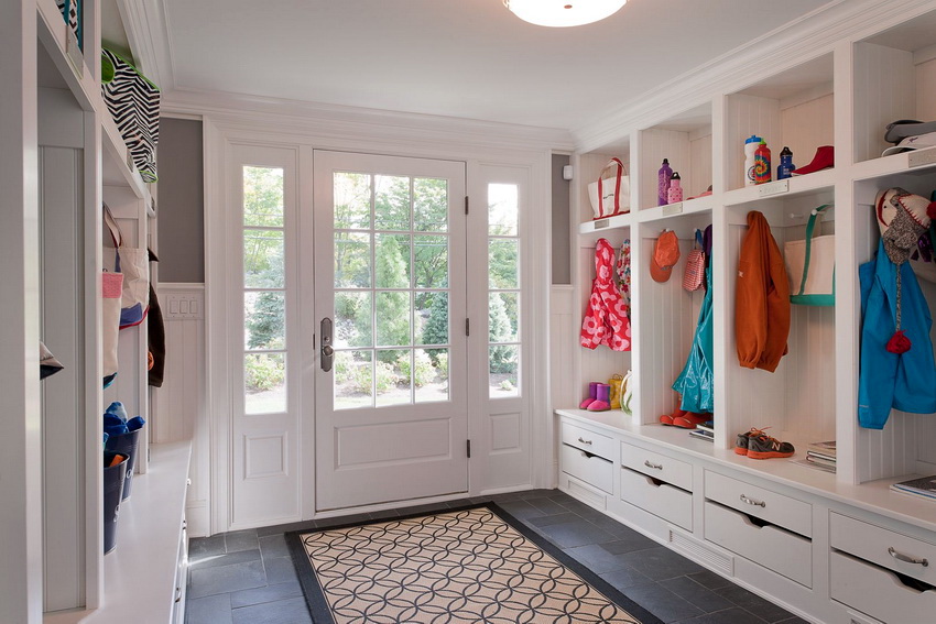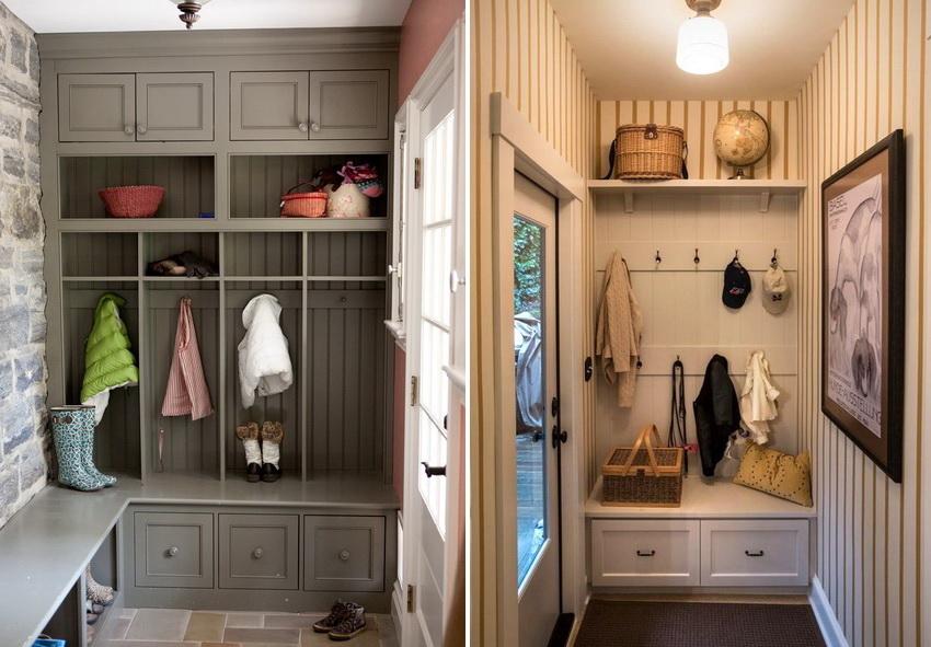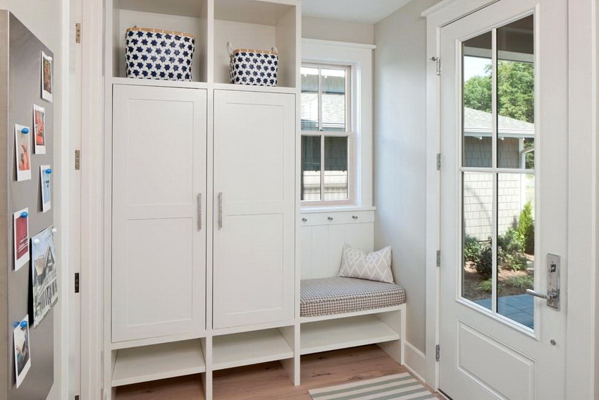 Also, do not forget about additional places for storing small things, for example, keys, care products for clothes and shoes. For this, a small drawer or an interior box with a lid that will stand on the bottom or top shelf is suitable. You also need to take care of the hooks for umbrellas and bags.