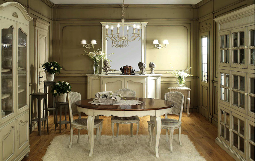 The extendable oval dining table for the kitchen combines the advantages of round and rectangular models: it folds out comfortably and can accommodate a large number of guests. Some structures can be almost close to the wall, so this form is considered universal and can be used in both large and small kitchens.