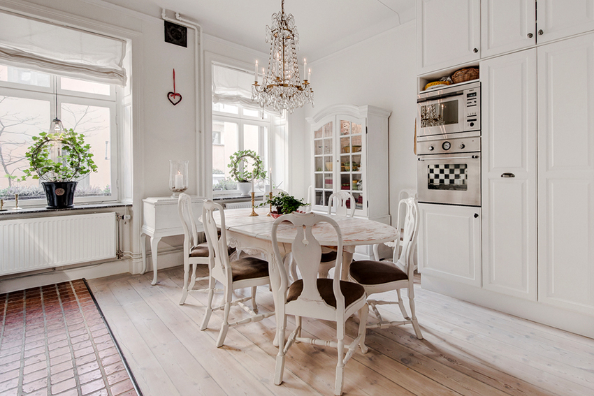 Dinner table Is the central element of the kitchen interior