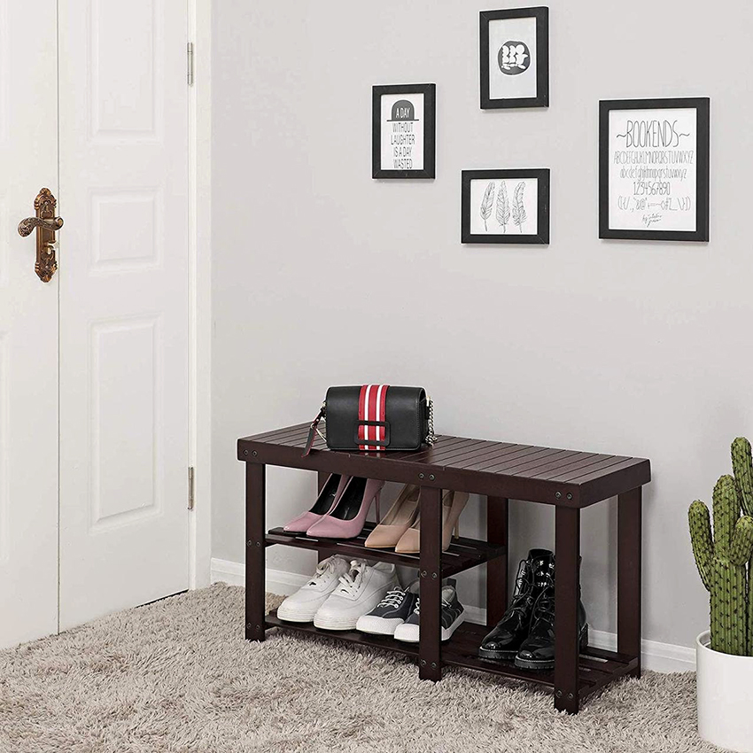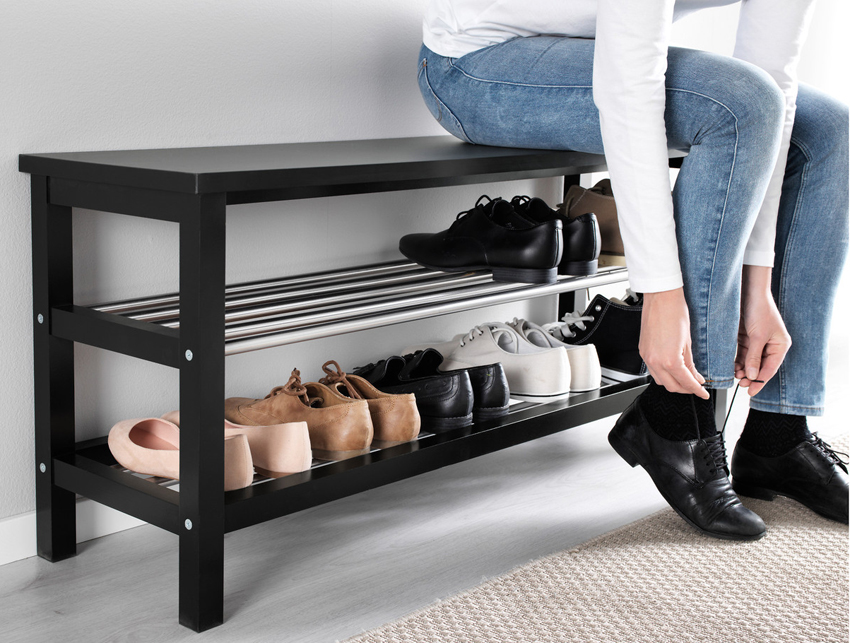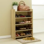 Wooden shoe racks are suitable for any interior, but for a longer service life they must be treated with a moisture-proof agent