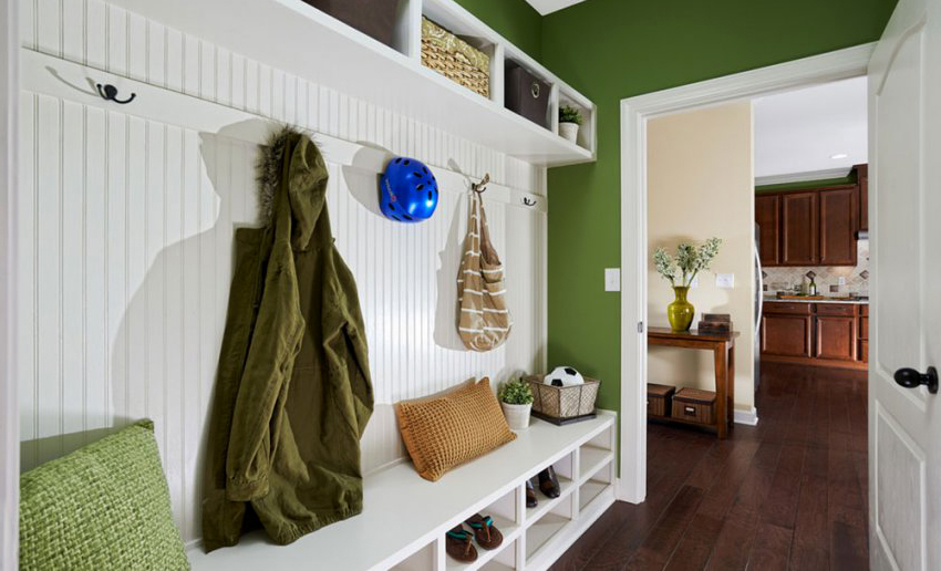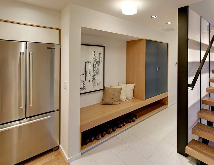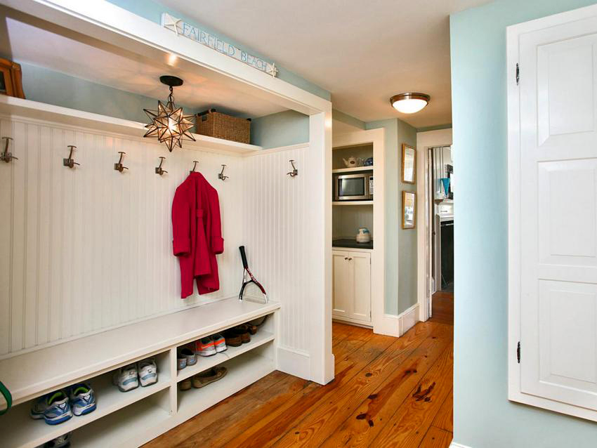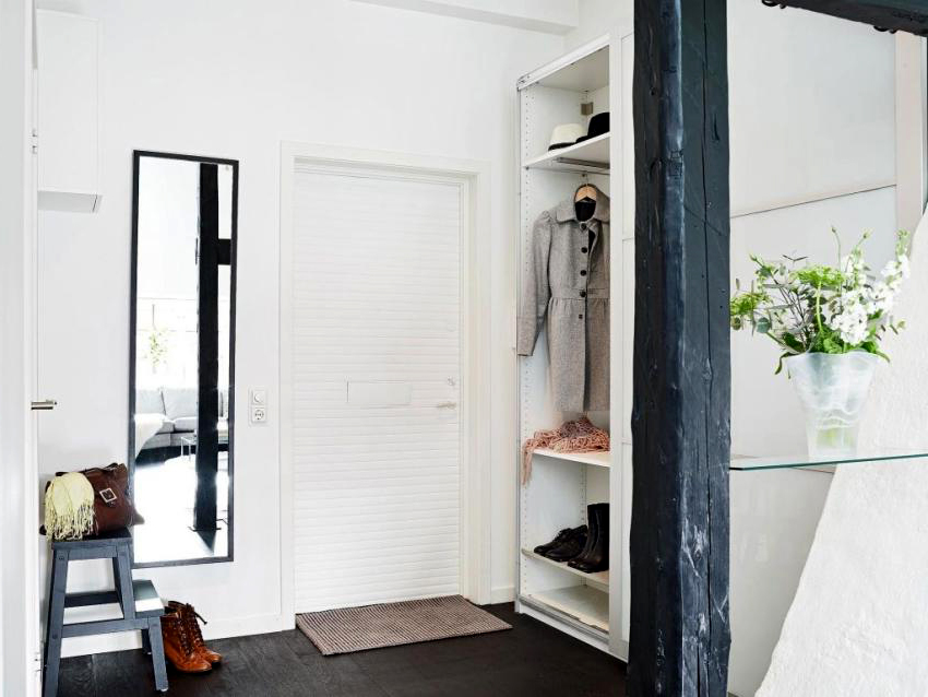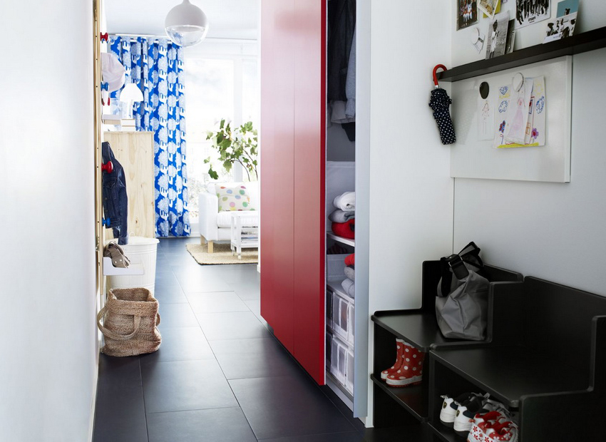 - hallway design: to make the interior look lighter, it is preferable to use light colors and open shelves;
