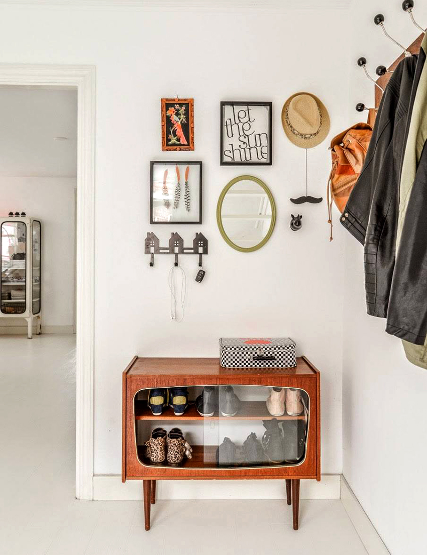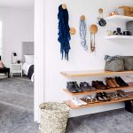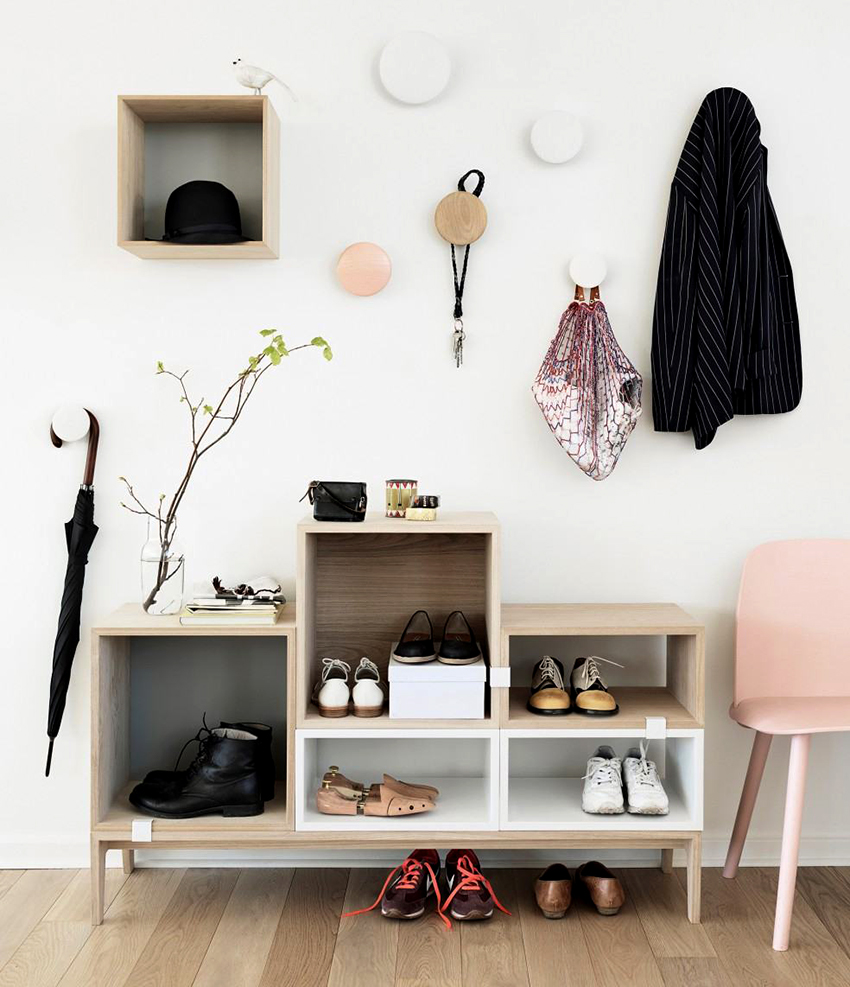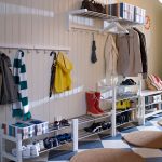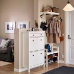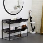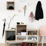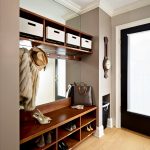 In the case of a compact hallway, you can install small shoe holders or opt for a set of hanging bins. Such structures will not take up space on the floor, and if necessary, they can be easily placed higher or lower. You can also save space in the room by installing wall stands.