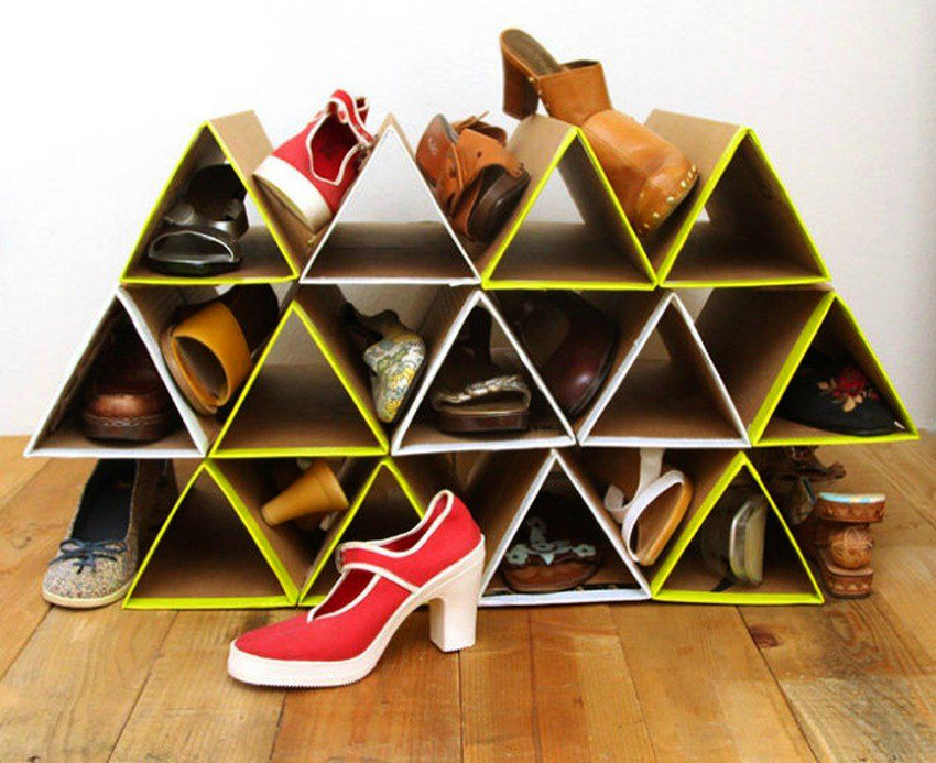 Helpful advice! Light and small items should be placed on the upper shelves of shoe racks made of cardboard boxes, and larger and heavier shoes should be placed on the lower ones. In the case of cardboard structures, it is imperative to adhere to fire safety rules.