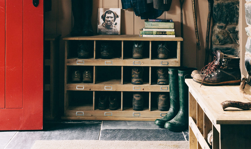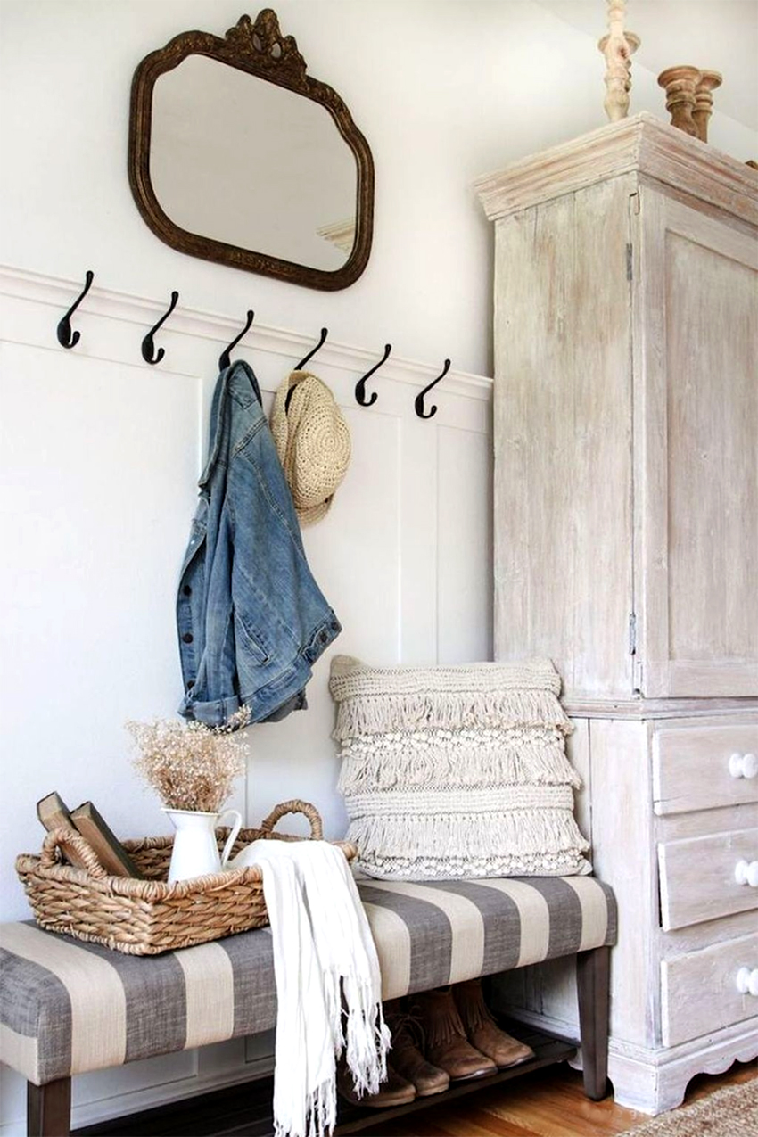 Features of shelves for shoes in the hallway, decorated in country style or shabby chic