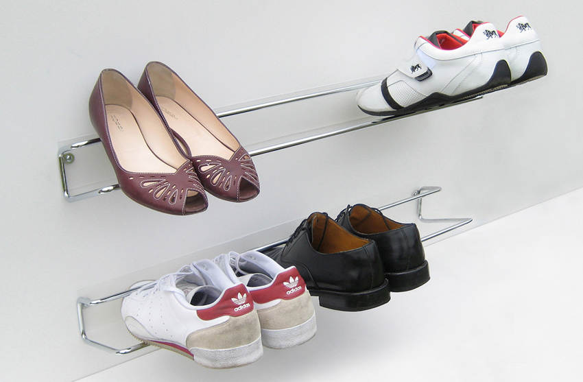Closed shoe racks allow you to keep products clean and dry. This fixture consists of shelves placed at an angle of 45 degrees, which can significantly save space.