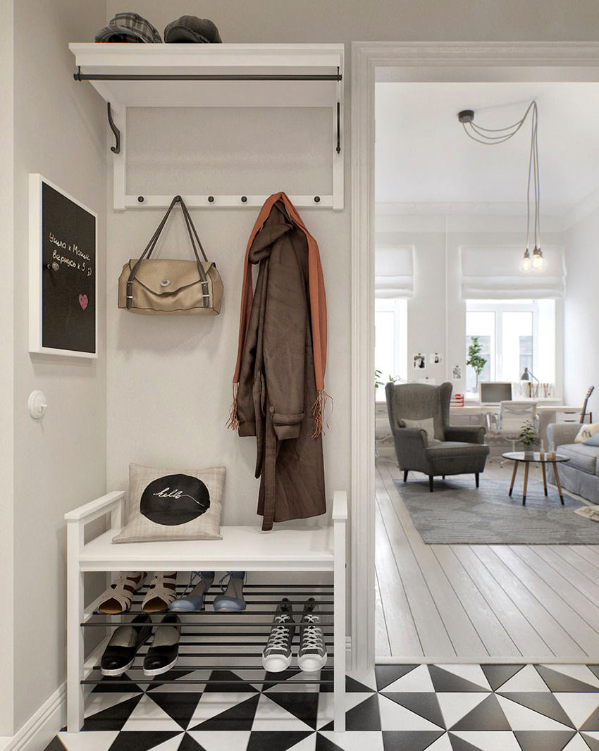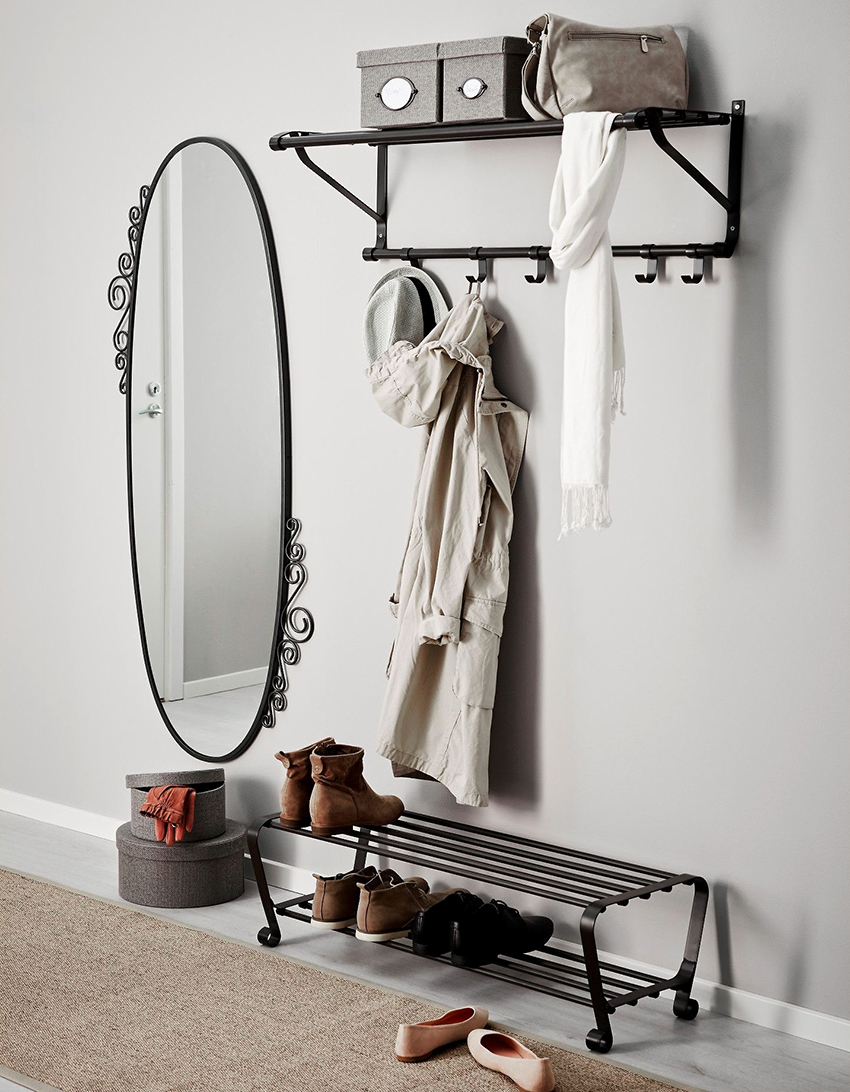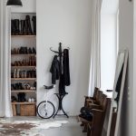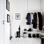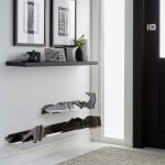 The plastic shoe rack is lightweight, flexible and sturdy, perfect for minimalist designs. You can complement the design of a narrow hallway using a mirror. However, for a minimalist style, it is better to choose a simple mirror that does not have voluminous and pompous frames, otherwise a small room will seem even smaller.