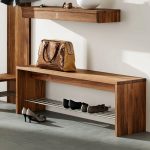 Wooden structures, complemented by forged elements, as well as benches with shelves for shoes in the hallway, with soft upholstery, look beautiful and original. Fabric elements must be made from natural materials. Satin, leather, thick cotton, taffeta are perfect for this. Classic style banquets with shoe racks will create a cozy and calm atmosphere in the room.