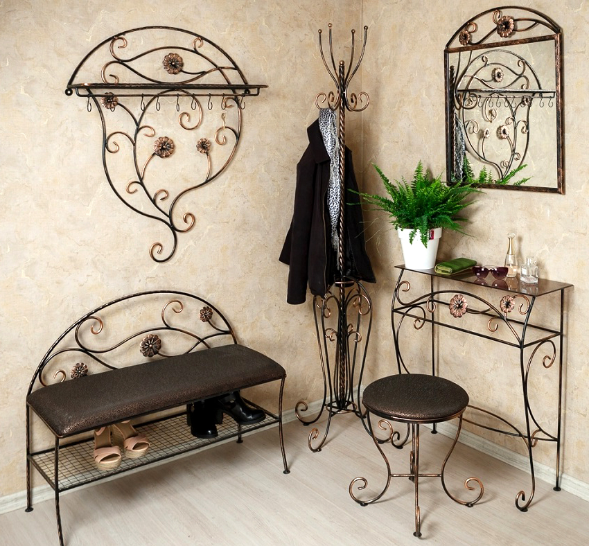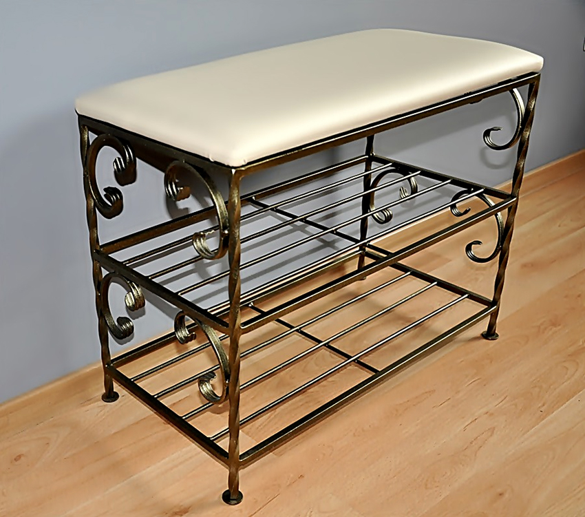 Helpful advice! Only a specialist can make a high-quality forged shoe rack. For manufacturing, steel of the highest standard is used. The decorative effect of the structure is given by powder pollination or applied patina. Metal mesh shoe racks provide fresh air.
