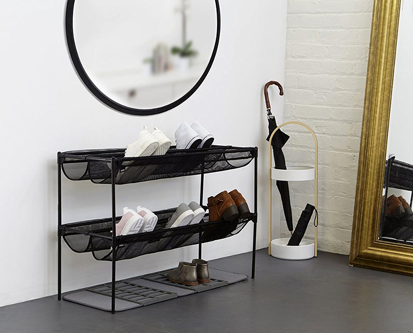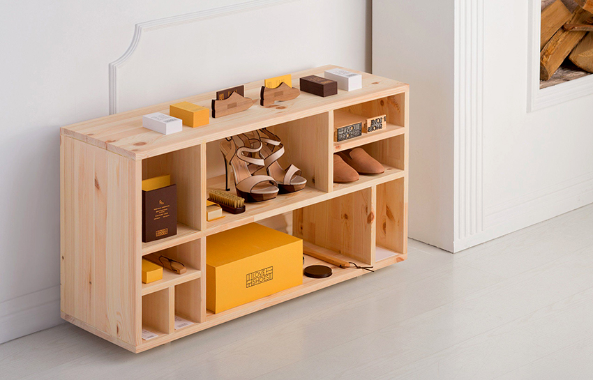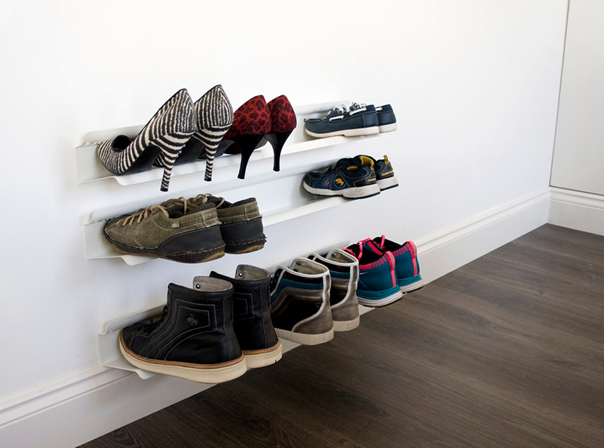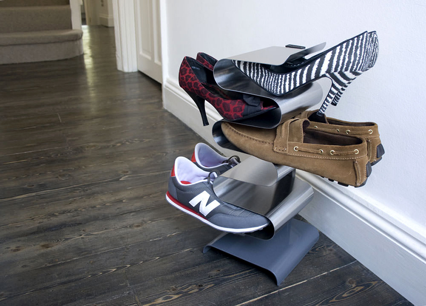 It is beneficial to use a shelf consisting of several tiers, for example, a modular design of stands and cabinets on the wall. Thanks to this structure, not only shoes, but also various accessories can be stored on the shelf.