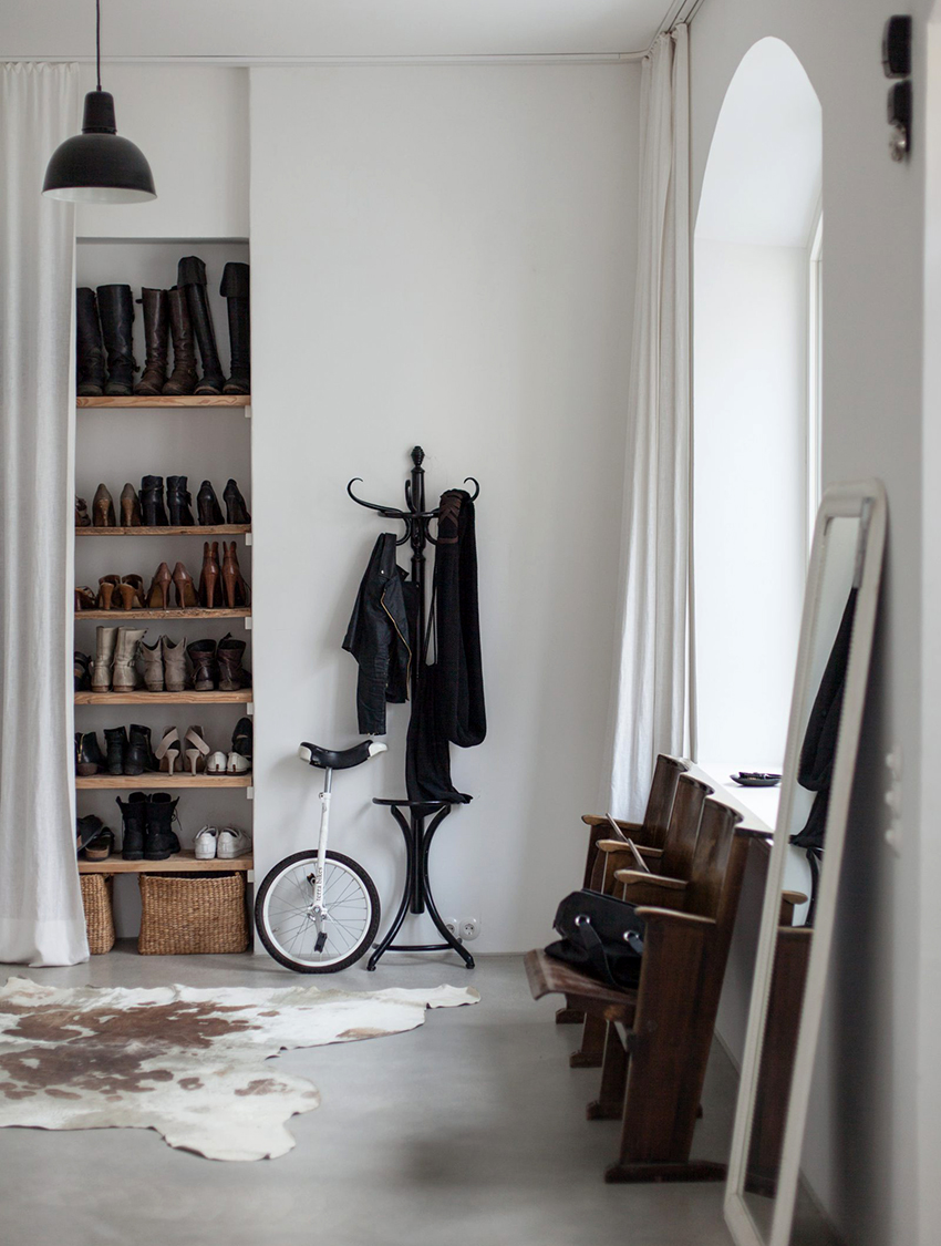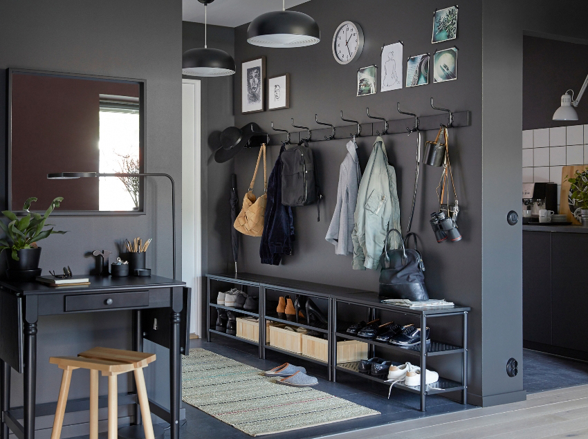 The choice of the type of shoe shelves depends on the style of the hallway and the needs of the residents.