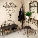A metal shoe rack is a reliable and durable product, but it will take certain skills to assemble it yourself. Metal structures look stylish, original and beautiful.The material is not afraid of mechanical damage, is practical to clean, and does not absorb unpleasant odors. The model can be the most common, made on the basis of chrome pipes, which is great for high-tech style. A forged shoe rack will perfectly fit into classic hallways. Lace elements add sophistication and lightness to the product.