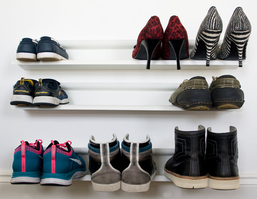 Helpful advice! You should not install open shelves for shoes of any type if there are pets in the apartment, because they can easily chew or scratch shoes.