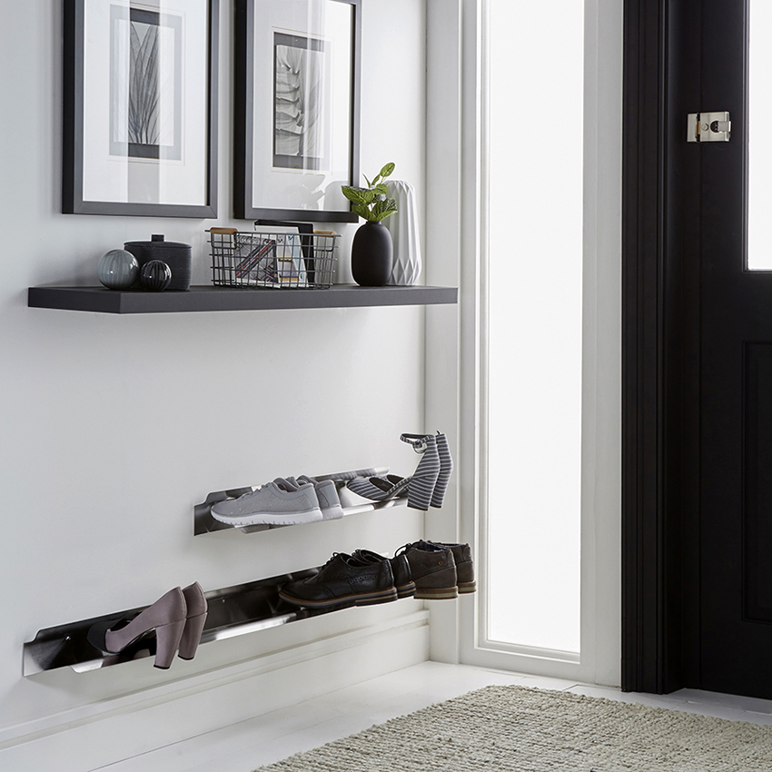 Photos of shoe shelves will help you choose the best option. It is important to remember that openness of shapes and simplicity of lines are the main elements of high-tech style.