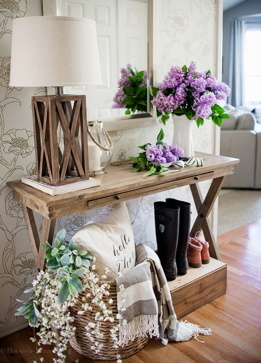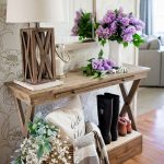 A wooden shoe rack with a soft seat trimmed with a cotton fabric with a floral pattern or with small polka dots will look beautiful. Also, the wooden surfaces of such a device can be decorated with floral patterns (using decoupage technique).