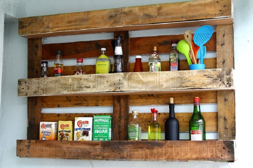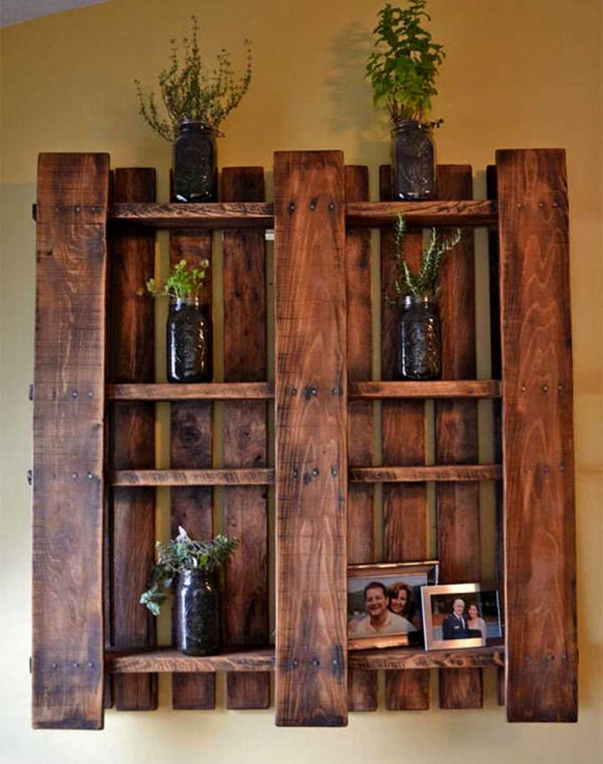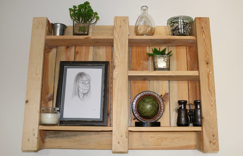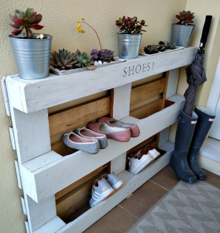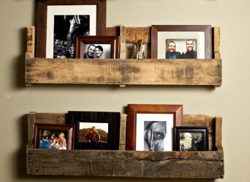 Almost any wooden structure can be assembled from individual pallet elements. Using this material, it is easy to easily make wall shelves for flowers or shelves for shoes.