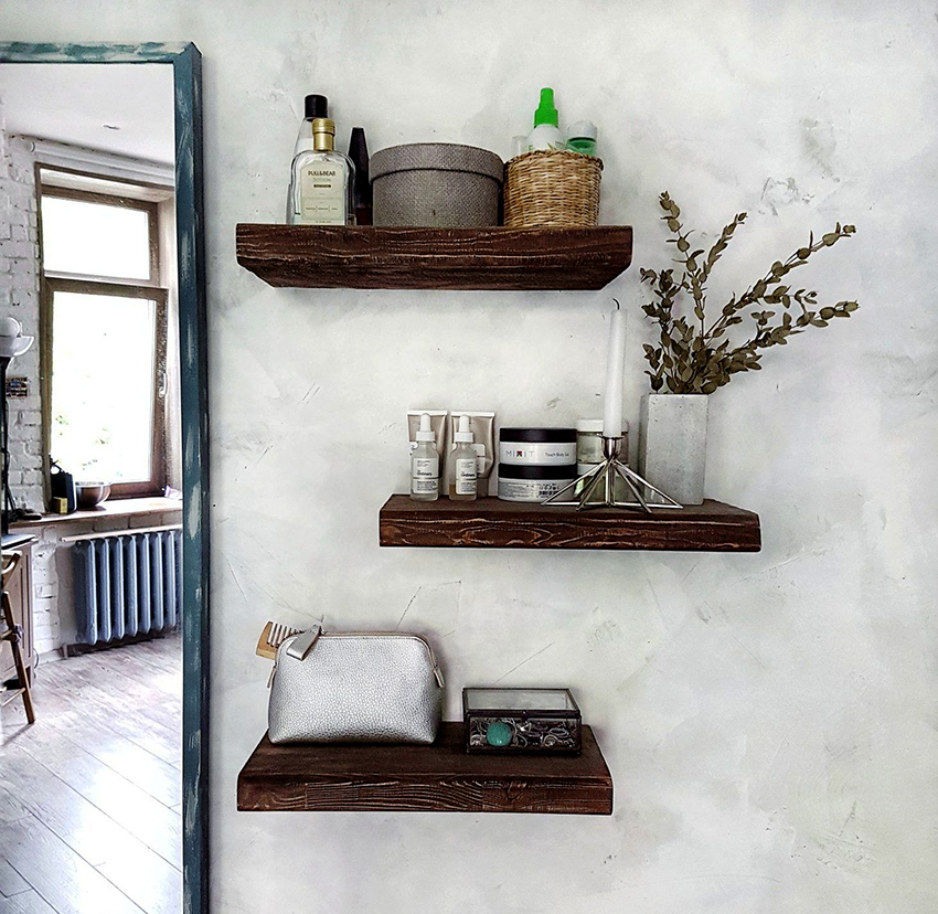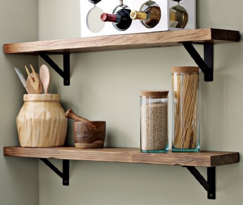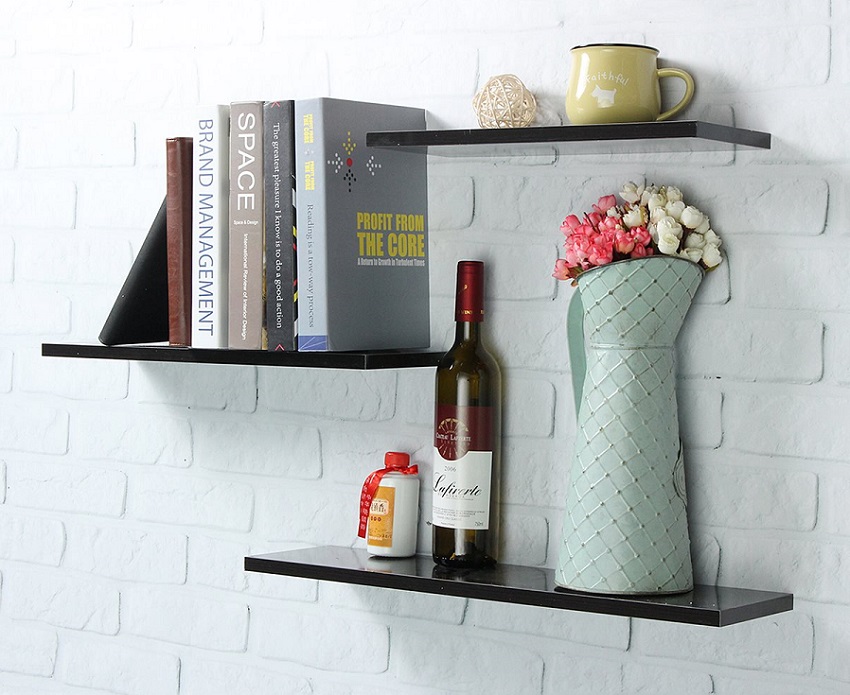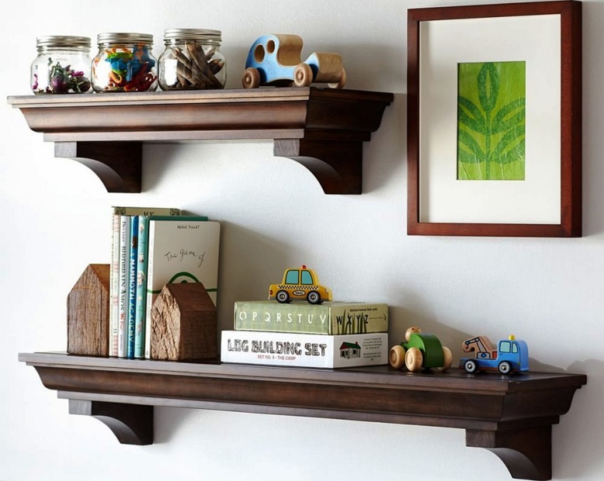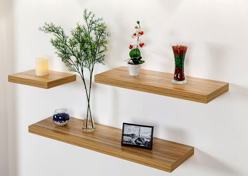 Wall mounted shelves can be installed in any room. This can be a living room, bedroom, kitchen or bathroom. Homemade designs are also suitable for hallways. In this case, they can be adapted to fit shoes.