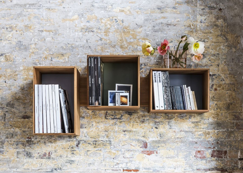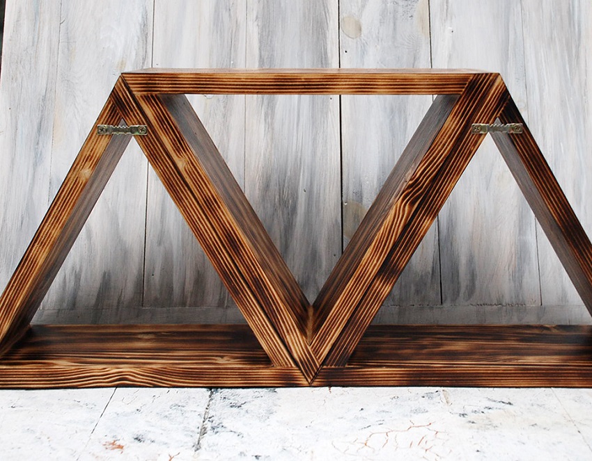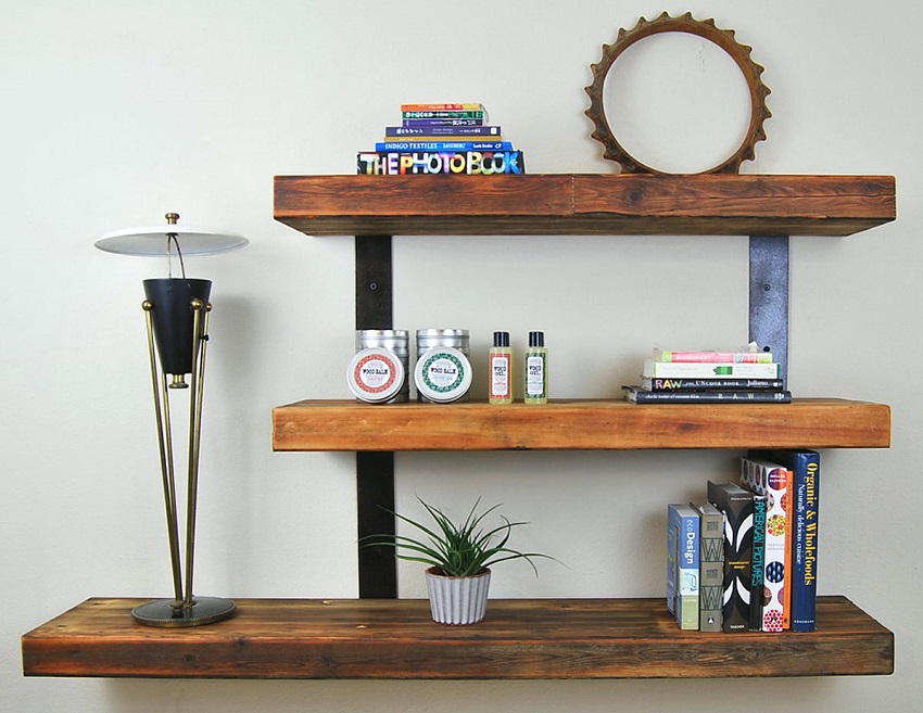 Wooden shelves look great in modern interiors (for example, high-tech). They can be purchased disassembled. The assembly is done independently. If necessary, products are made by hand. The second option allows you to save finances and bring originality to the interior of the room.