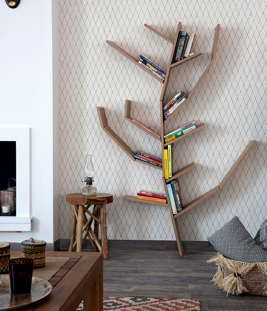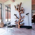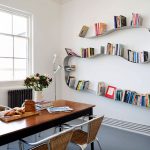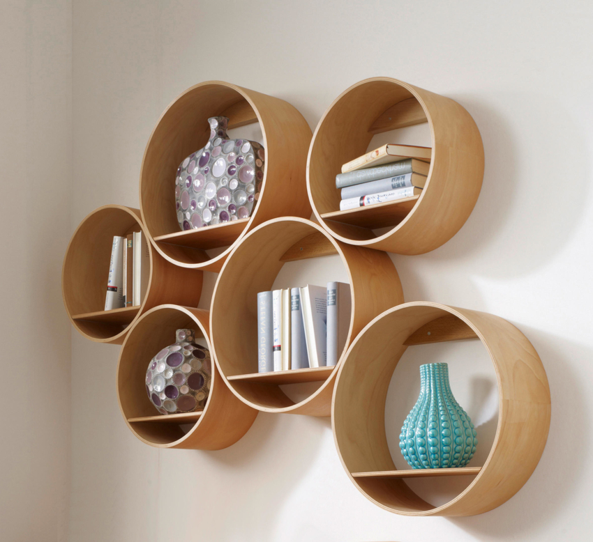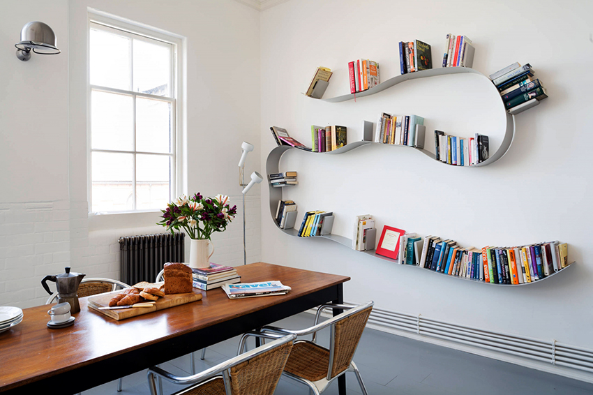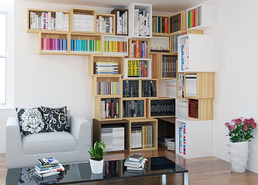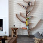If the product is located high, then it is recommended to place small objects on it. Accordingly, it is best to put more voluminous things on the lower tiers. It is desirable to decorate original bookshelves with flowers (natural or artificial). The pots can be placed on the top tier.
