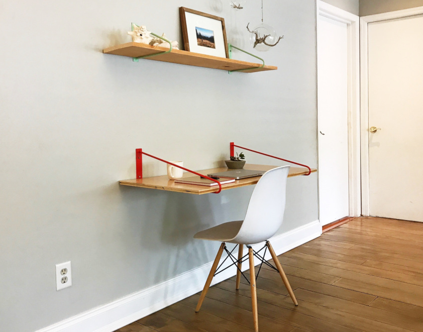 After assembly and painting, the finished structure can be installed on the work surface. To do this, use special mounts for shelves on the wall. These can be standard hinges or brackets. The shelf installation mechanism must be observed to ensure the required reliability of the product.