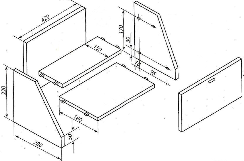 In order not to make a mistake during the installation of the shelf, it is recommended to prepare a preliminary drawing. In the diagram, all sizes and the number of fasteners must be indicated.