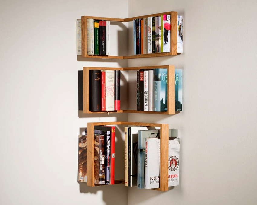 After the frame is made, it is necessary to check how smoothly the structure is assembled. If the work is done correctly, then you can start fixing the book shelf to the wall. Photos of finished products of this type allow you to evaluate their advantages. After fixing to the wall, the structure is supplemented with shelves.