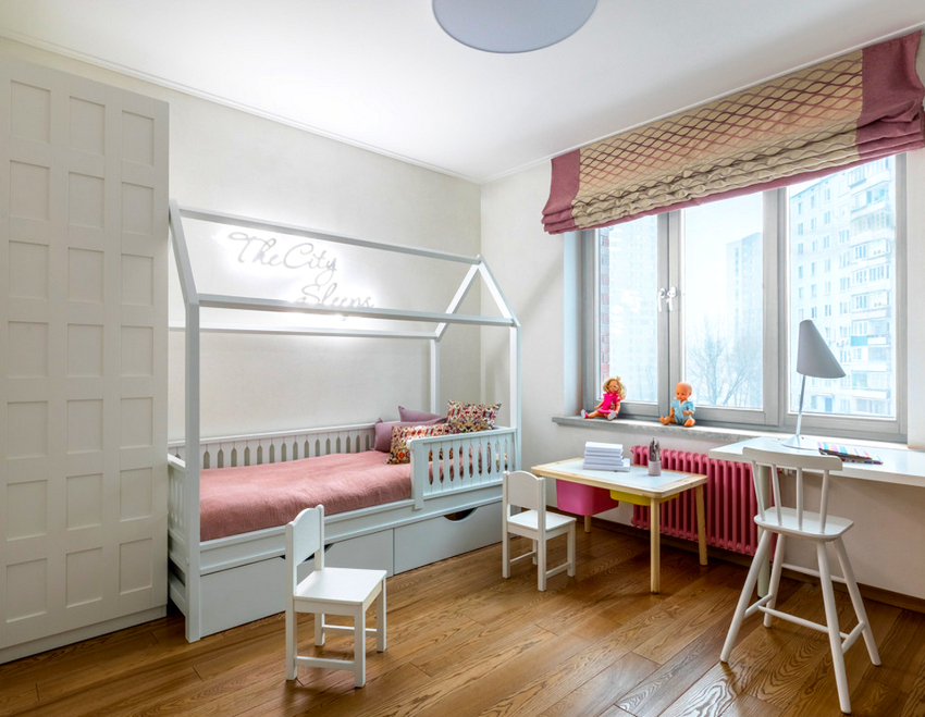 Bed design. All pieces of furniture should not only fit in size, but also correspond to the general style of the room. Shopping centers offer a wide range of products in various shapes. Therefore, if you want to put a bed in the nursery, for example, in the form of a spaceship, this is not difficult to do.