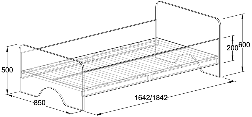 - For children from 3 years old and teenagers.The standard parameters of a single bed are used here: width - 80-100 cm, length - from 170 to 190 cm. Usually such beds are labeled as Single.