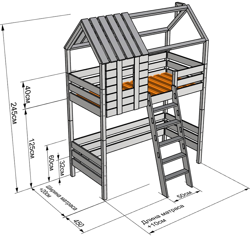 - two-story products or loft beds have a height of 1 m and above.