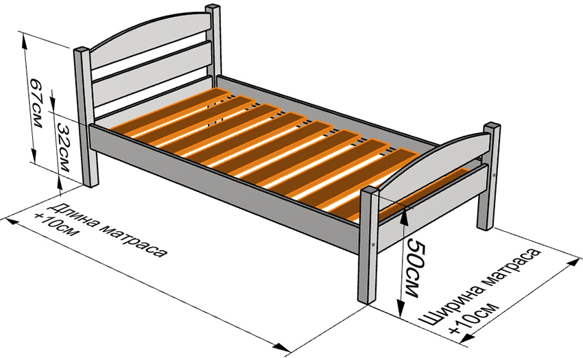 Important! It is necessary that the area of the frame exceeds the size of the mattress by 1 cm on each side.
