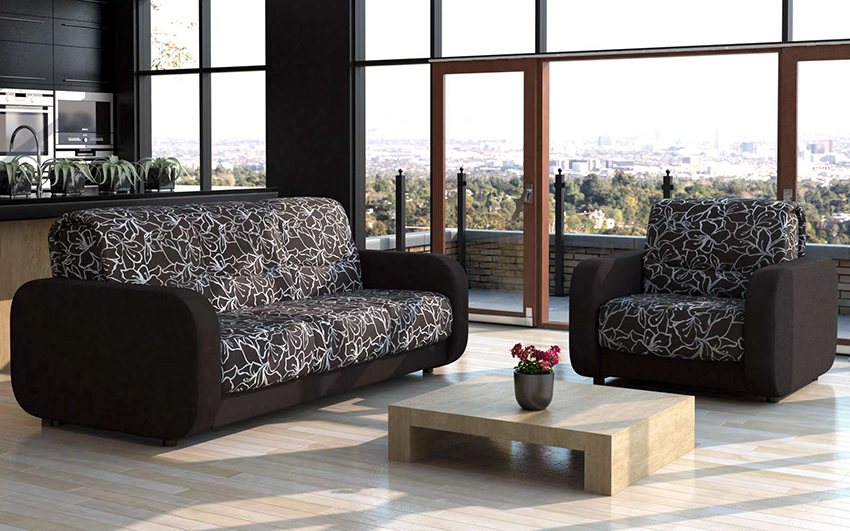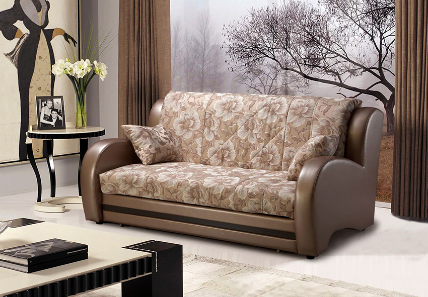 Rarely, but massive items are also found among the Accordion models. A similar look is provided by the wide armrests. Such furniture options have a single-color or combined upholstery.