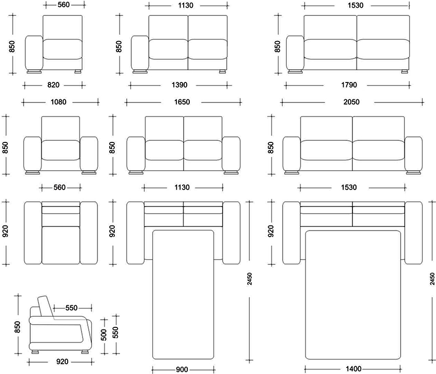 In accordance with the dimensional indicators, the following types of sofas are distinguished:
