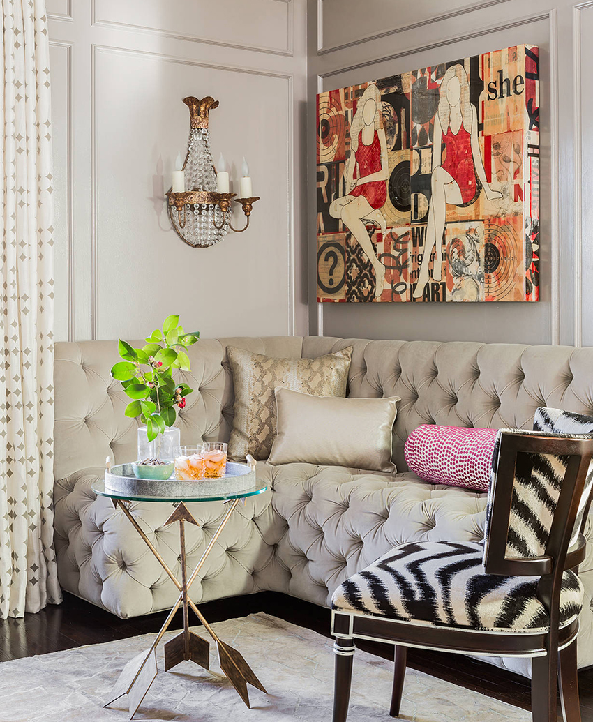 A small sofa will look much more massive with a high pile upholstery fabric.