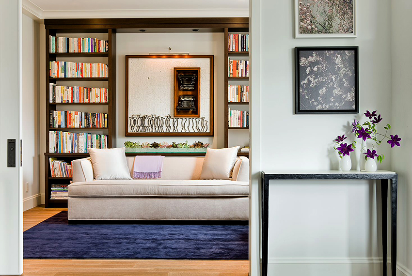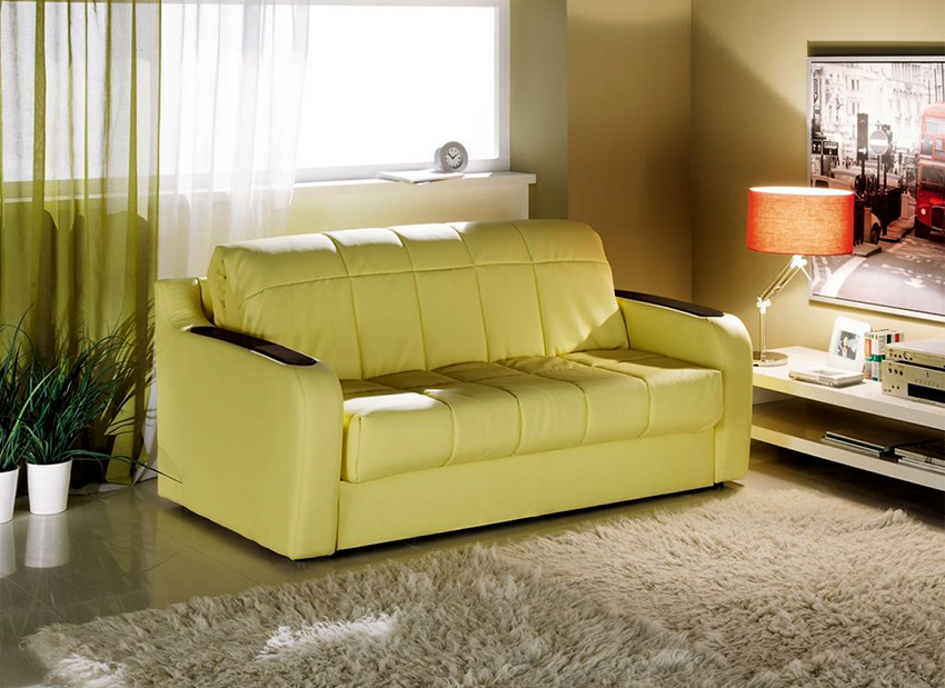 With the same dimensions, “Books” sofas look much more massive than designs with the “Click-and-gag” mechanism. And the reason is primarily in the original design of the latter. They do not have massive armrests, they are replaced by raised side parts, which can be easily lowered if necessary.