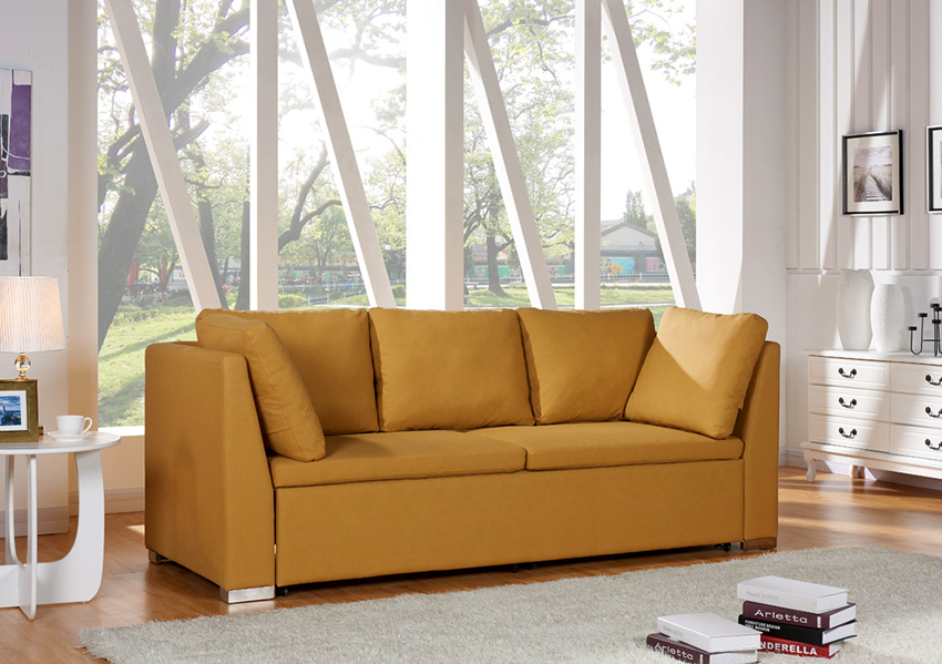 With little effort, the lower part of the sofa moves forward. Sliding can be provided both by rollers and wide plastic legs.