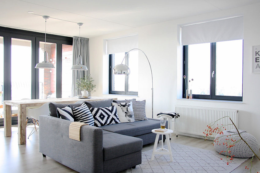 Useful advice!You should not purchase upholstered furniture in the living room, which will occupy more than 1/5 (for corner sofas) and 1/6 (for straight structures) of the room area.