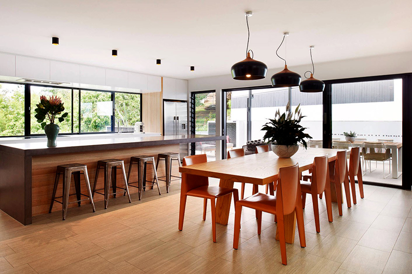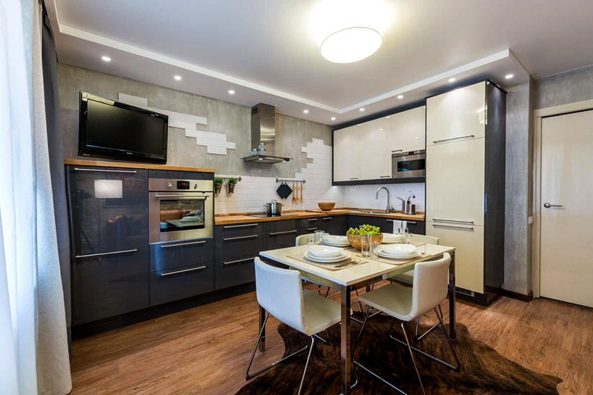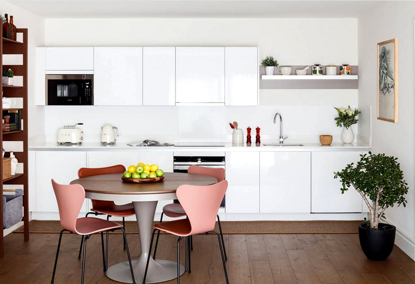 When choosing a suitable table size, it should be borne in mind that it should be convenient to use: move the chairs away without problems, create a convenient passage between the dining surface and another group of furniture. A distance of at least 1 m is considered optimal for a standard kitchen.
