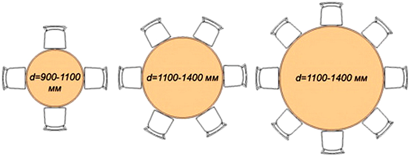 Important! For a round table, the optimum width is increased to 0.9 m.